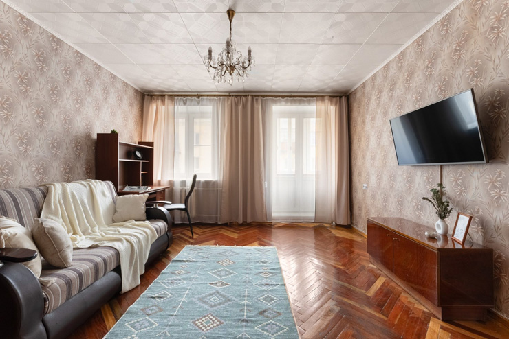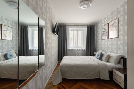 Самолетом до аэропорта Пулково (г. Санкт-Петербург), далее на рейсовом автобусе №39 до остановки «Бульвар Новаторов – Станция метро Проспект Ветеранов», далее на метро до станции «Чернышевская», далее пройти 1,3 км до апартаментов.